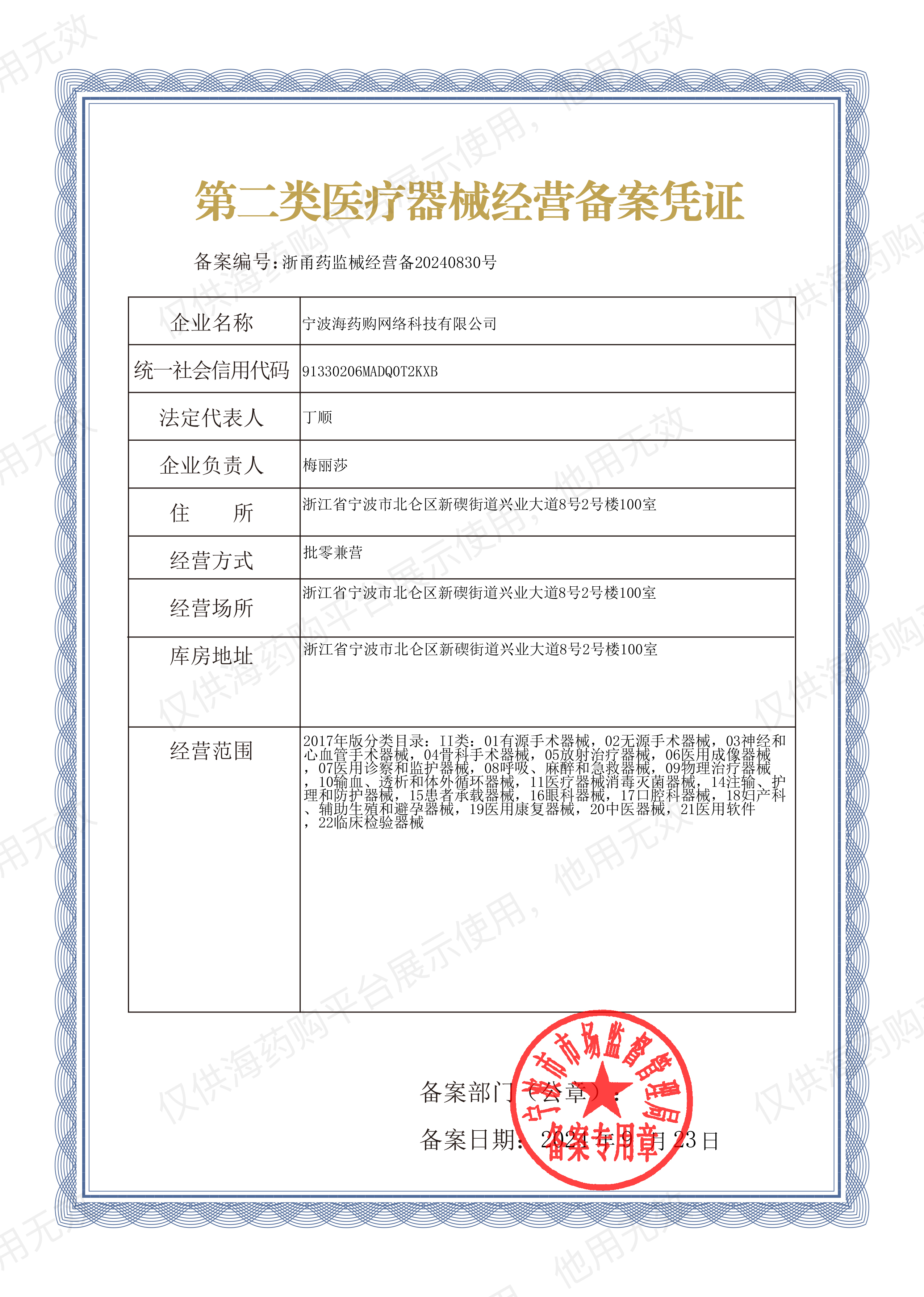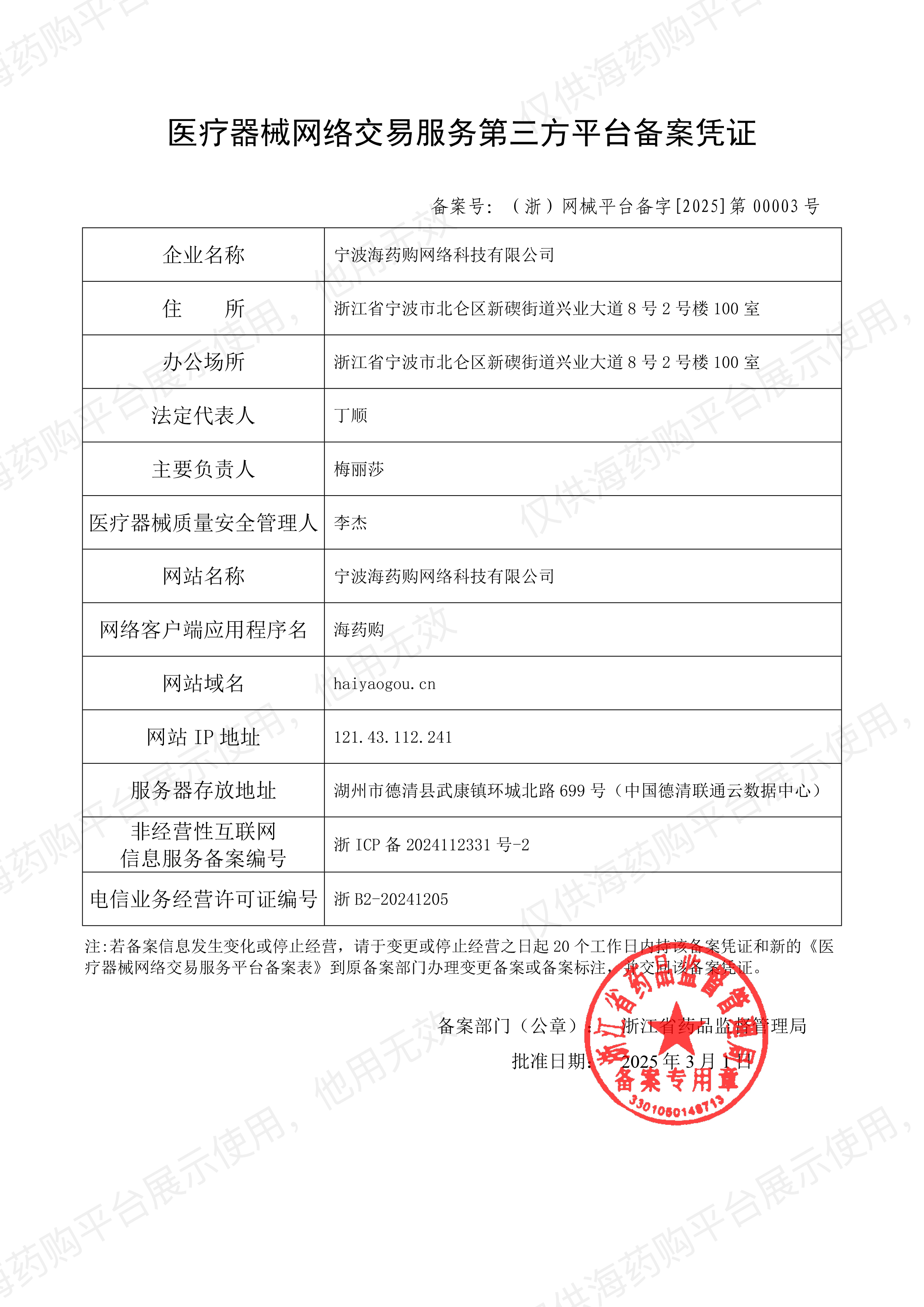 联系电话:0572-2763035 商务邮箱:BD@nysochina.com COPYRIGHT 2024 宁波海药购网络科技有限公司 版权所有 备案号:浙ICP备2024112331号-1 营业执照 | 增值电信业务经营许可证编号: 浙B2-20241205 药品经营许可证编号: 浙DA574004982 | 互联网药品信息服务资格证书编号:(浙)-经营性-2024-0372 药品网络交易第三方平台备案编号:(浙)网药平台备字(2024)第000019-000号 医疗器械网络交易服务第三方平台备案号:(浙)网械平台备字[2025]第00003号 第二类医疗器械经营备案凭证编号:浙甬药监械经营备20240830号 | 医疗器械网络销售信息表 网络食品交易第三方平台提供者备案号:浙网食A33000182